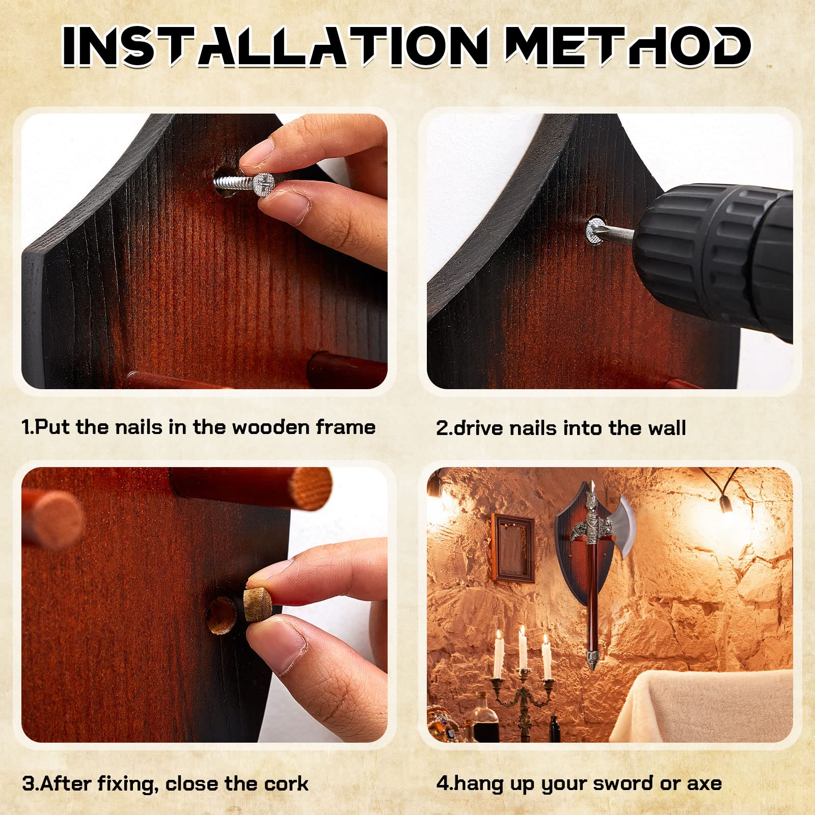 The sword stand display is available in the black brown color, classical and vintage, equipped with screws and anchors, convenient and effective for you to operate.